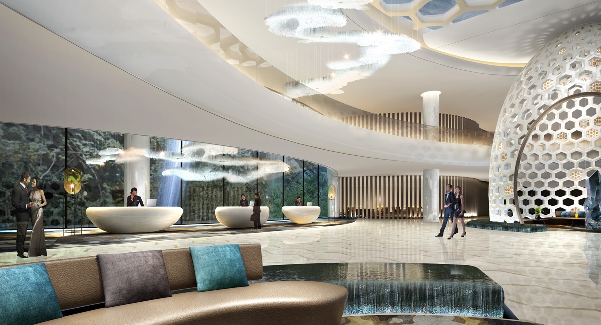 酒店設計靈感來源于蜜蜂的智慧蜂巢,每個正六棱柱蜂巢的底,都是由三個全等的菱形拼成的,并且每個菱形的鈍角都等于109°28’,故該酒店設計取名為109°28’,意在表達設計師追求完美的理念。